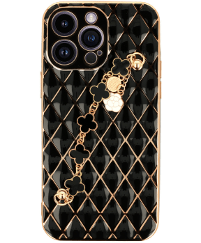 Glamur silikonski ovitek z zapestnico za iPhone 13 - črn