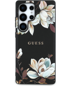 Originalni GUESS ovitek za Samsung Galaxy S25 Ultra 5G - MagSafe - Printed Flower - črn - GUHMS25LPGNMPLMK