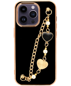 Trendy silikonski ovitek z zapestnico za iPhone 11 - črn s srčki
